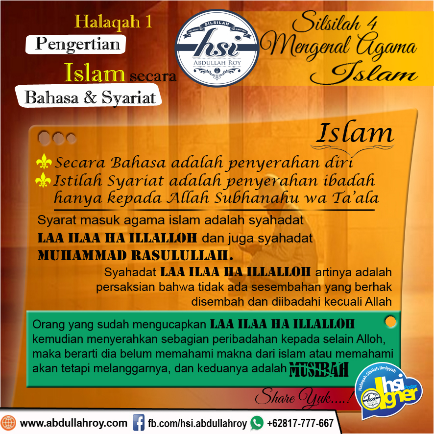 Halaqah yang pertama dari Silsilah Mengenal Agama Islam adalah tentang “Pengertian Islam Secara Bahasa dan Syari’at”.