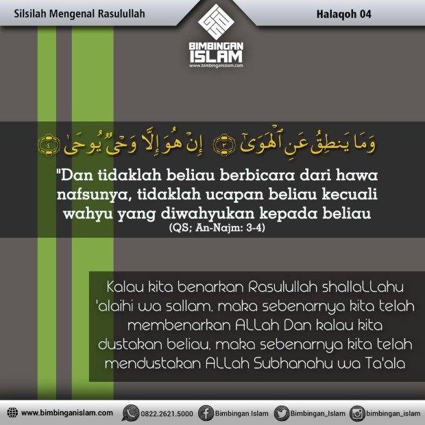 Halaqah yang ke-4 dari Silsilah Mengenal Rasūlullāh ﷺ yaitu “Mengenal Beliau ﷺ Sebagai Seorang Rasūl Yang Diantara Tugasnya Adalah Membawa Berita Dari Allāh ﷻ”.