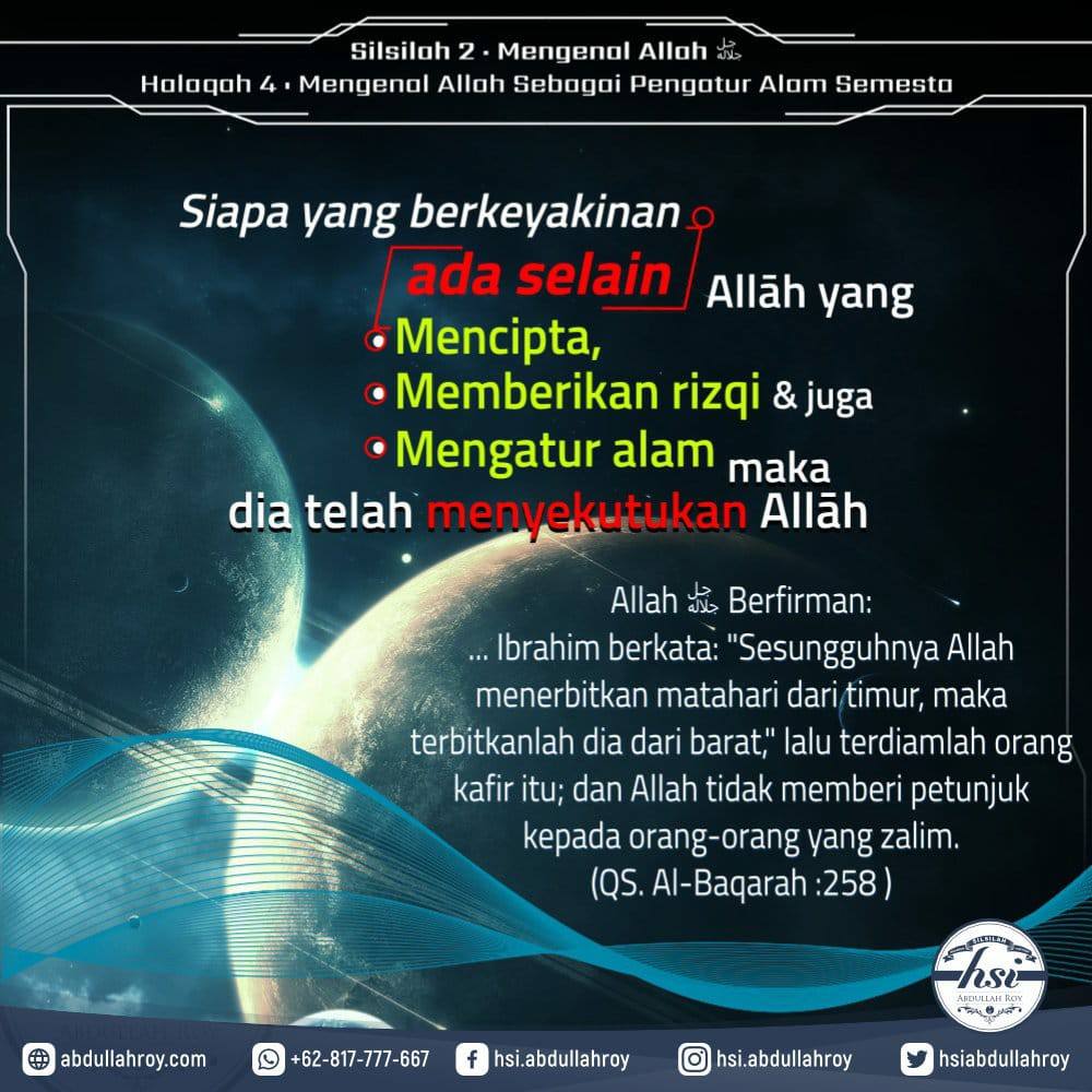 Halaqah yang ke-4; Mengenal Allāh ﷻ Sebagai Pengatur Alam Semesta.